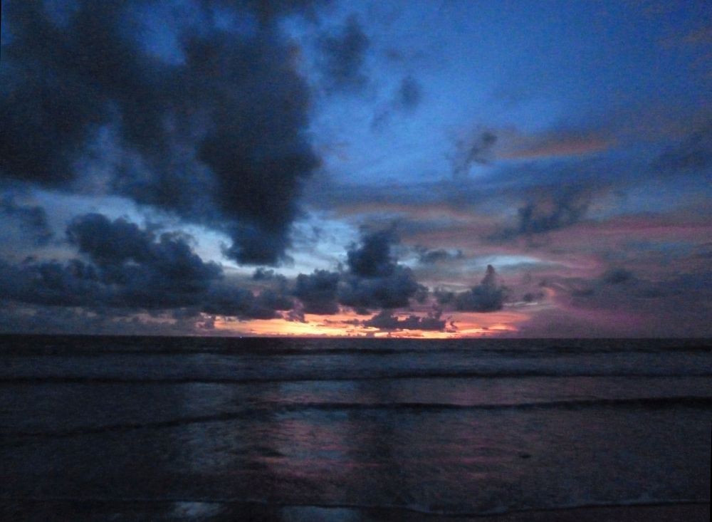 We found the little community where we were supposed to stay that night. We had found this listing on Air BnB and I’d been excited to see it ever since I had booked it. We had got a small house close to the sea. It had two levels with the living room and bathroom on the lower level, and the bedroom on the upper level. The best part about this place was that it was built in a typical Indonesian style but all the walls were glass! You could see the Bali sea from bed or from the little balcony. All around us were beautiful trees, and right below us was a little fish pond with gorgeous fish swimming around it.