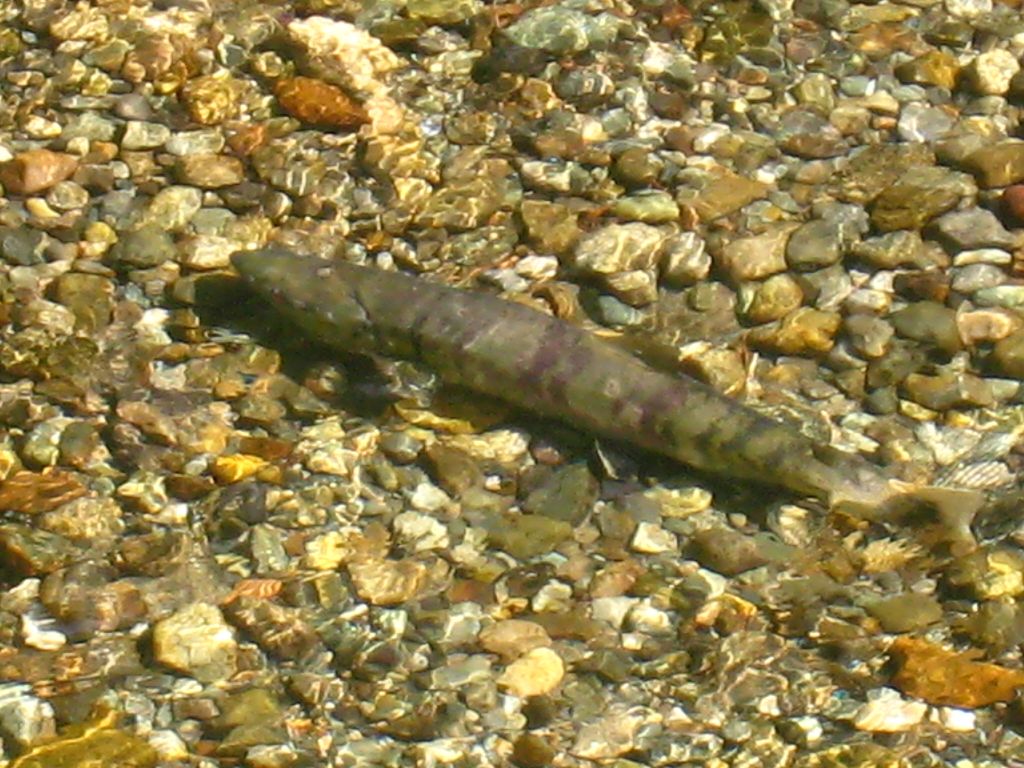 We dismounted and paid for our tickets to go onto the observation deck and lo and behold – another first for me – the sight of enormous salmon swimming through the river or resting. We waited for quite a while, but the bears never showed up though.