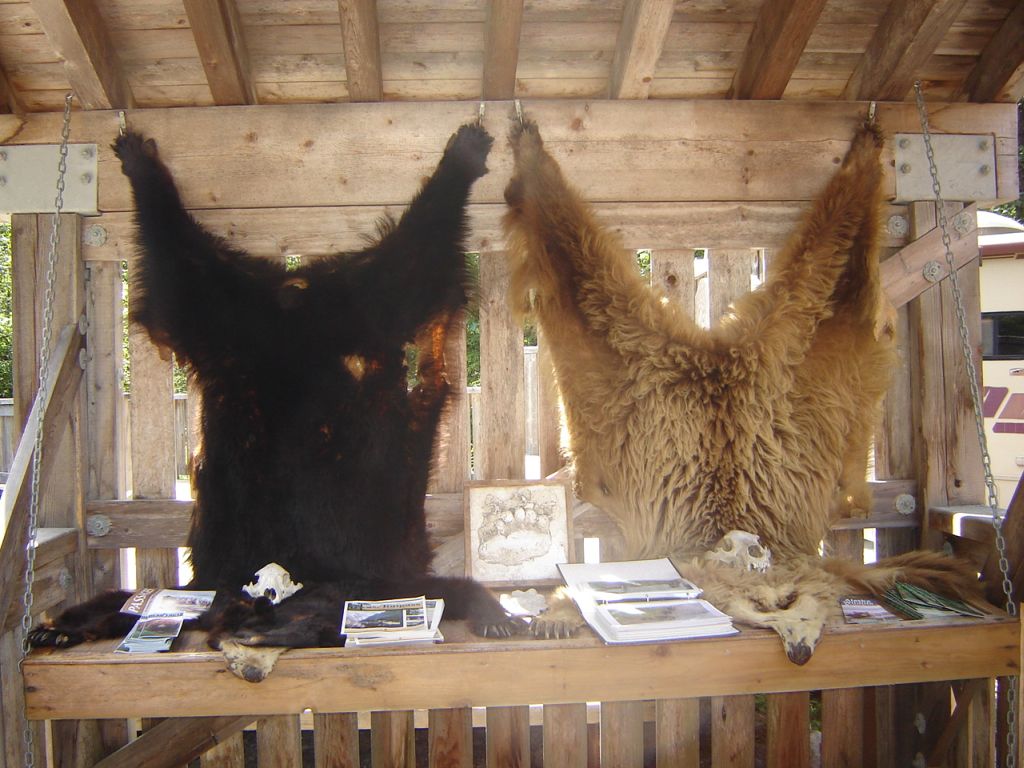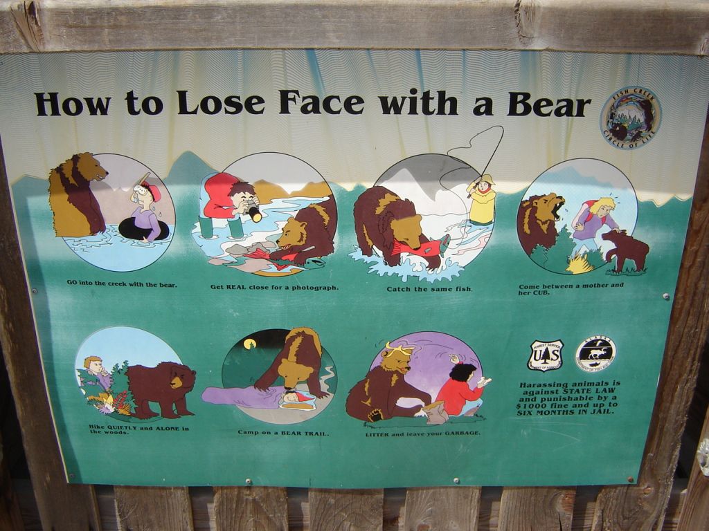 Our bartender told us about a spot up the road where one could go look at salmon in the river and bears that came to catch the salmon. They had had a bear sighting earlier in the day, so there was a good chance that there would be more. Seeing as I was still not keen on riding, I hopped onto the back of Sarah’s KLR, resolving to keep my eyes firmly shut and imagine happy thoughts until we reached our destination. We stopped a bit earlier than we had intended, when she saw another rider on an 08 KLR. As she pulled over next to him, he turned out to be a kid of about seventeen years of age who was traveling with his dad. This was the second father-son pair we had encountered in this town. We told him where we were headed and he cheerfully agreed to follow us and come along.