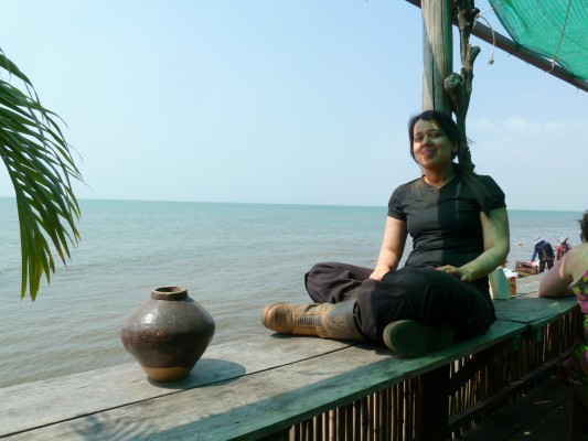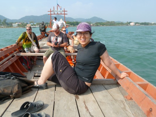 The boat ride was amazing. I always enjoy being on the water. The boat had a motor, so it went at a good pace, and the breeze felt lovely. The memory of sailing on a little boat on the Gulf of Thailand on a warm sunny day with the wind blowing my hair back is one I’ll keep for a very long time. The thought of going to a little idyllic island to stay at a cabin on the water, swim, and drink cool drinks on the beach was also exciting. We proceeded to do exactly that.