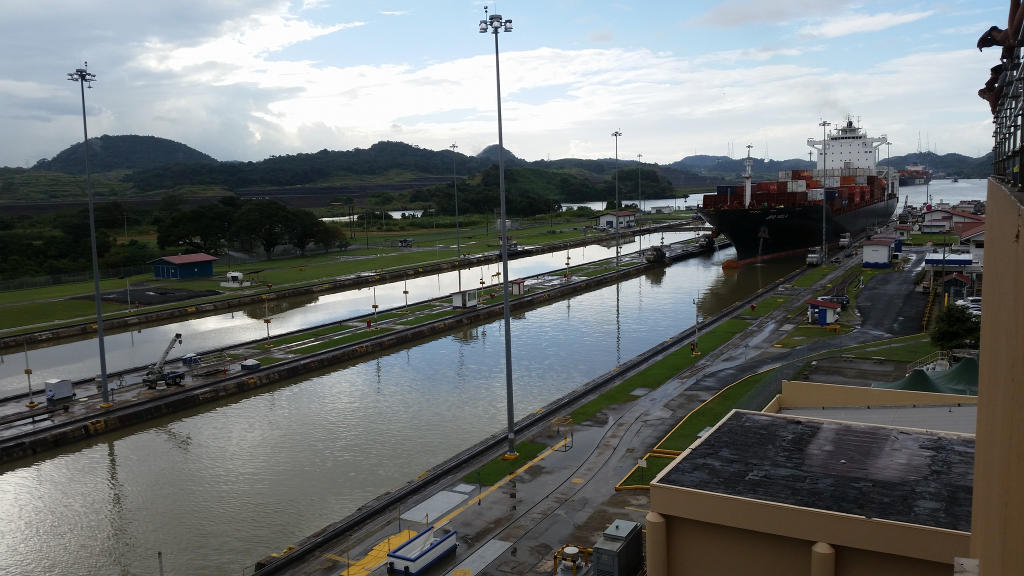 The three locks that control the ship’s passage through the canal are designed to use gravity, making it a very simple, elegant design – especially impressive given that it was designed a hundred years ago! The Atlantic Ocean and the Pacific Ocean are at different heights, so the locks are necessary to lift or lower the ship as it passes from one ocean to another.