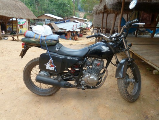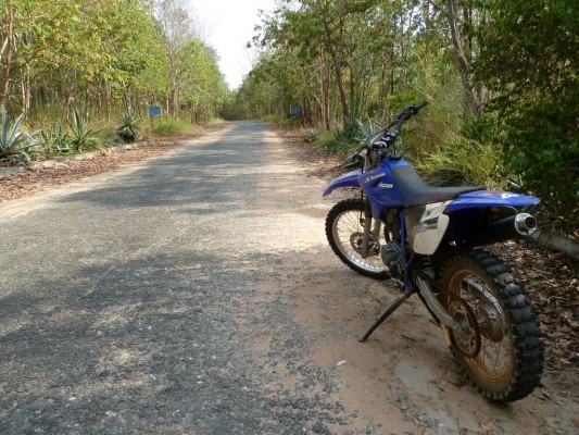 When we started to get ready to leave, I asked Chea if I could go past him on the twisty road and he said yes. W00t! We went back over the unpaved road and he indicated that I should go past. I didn’t need to be told twice! I rolled open the throttle and roared down the road, surprisingly fast for this tiny bike. This was bliss! Lots of lots of glorious corners! I had to slow down a bit for one car, some rocky gravel patches and bumps in the road, and a couple of scooters, but outside of that, I was free to go fast. I think I made it back in a third of the time it took us to go up.