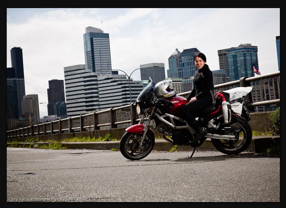 Ever since I started riding four years ago, I’ve wanted some nice photos of me with my bikes, but never actually got around to getting them taken. You know how it is – you go out on solo rides and ask random people to take your picture and after you’ve thanked them and they walked away and you actually look at the picture they took, all you can do is sigh and hope you have better luck the next time. I’ve often thought of scheduling a photoshoot with one of my photographer friends and have them take some good pictures, but every weekend that the weather seemed nice enough to do this, I decided go riding instead of standing around the bike and looking pretty. :P