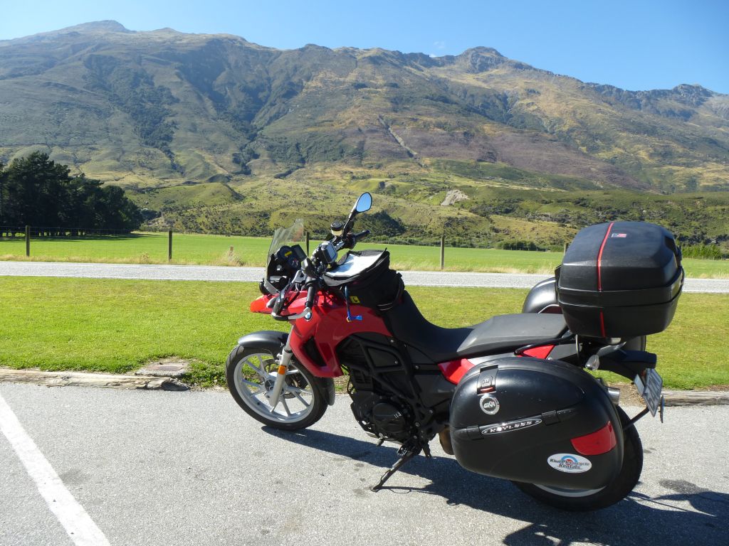 The most gorgeous section of the ride was when I was winding through Lake Hawea and Lake Wanaka and then over to Makarora. I’m talking gob-smacked, I-can’t-believe-these-epic-vistas type of scenery. And what amazing twisties! And such glorious weather! I’m a lucky lucky girl.