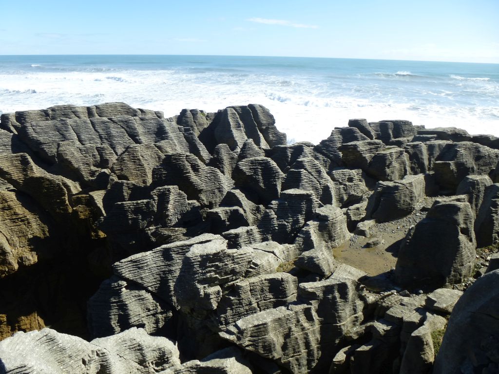 My two main stops along the way were lunch at Greymouth and the pancake rocks at Punakaiki. The walkway for the rocks was a little too full of tourists but the rocks themselves were pretty cool looking. Apparently nobody knows what caused the striations through them!
