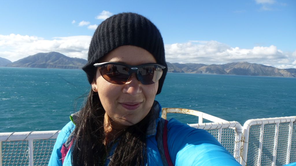 Bike secured, I walked up to one of the decks and found a spot to sit down. Since securing the bike took so long, I wasn’t able to snag a window seat. I was also super hungry exhausted by this time so I missed most of the interesting part of the ferry crossing as it wound its way north through the Marlborough Sounds. By the time I felt well enough to go outside, we had already crossed into the ocean. In the distance I could see mountains with windmills on them.