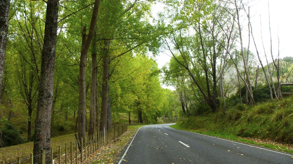 This morning I left Napier for Gisborne. It was a relatively short ride of around 200 km, although I took the inland twisty route which meant that I was riding for a good four hours. Today’s ride was one of those where I truly felt like I was riding through the Shire in Middle Earth with all the lush green rolling hills for as far as the eyes could see. The inland road also had the advantage that there was almost no traffic and I rarely saw more than a car of two in the space of a half hour. The road was a cornucopia of colors –  hedges and meadows in every shade of green, copses of white and silver trees, leaves tinged with red and gold heralding the first signs of autumn. And the road… it undulated, climbed, descended, a motorcyclist’s dream with mostly perfect pavement. I also saw quite a few animals – sheep, sheep dogs, cows, horses, deer, hawks, little black birds with white tipped wing…