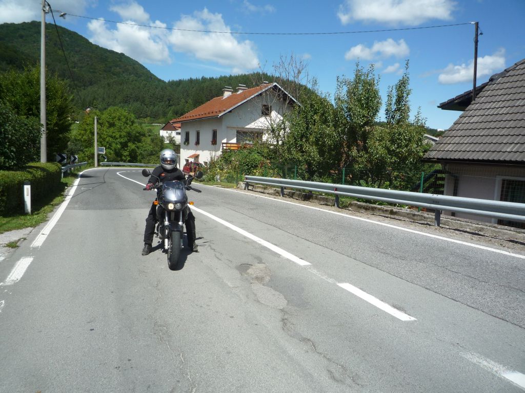 Before I knew it, Italian road signs changed to Slovenian and I was on the west end of the Slovenian Alps. The roads gradually narrowed, the surface appeared more and more eroded, and traffic increased as I passed from one little town to another, gingerly testing the waters to see if the good Slovenian people had the same indulgence to eager lane splitting motorcyclists as the Germans and Italians did. They appeared to, so I continued.