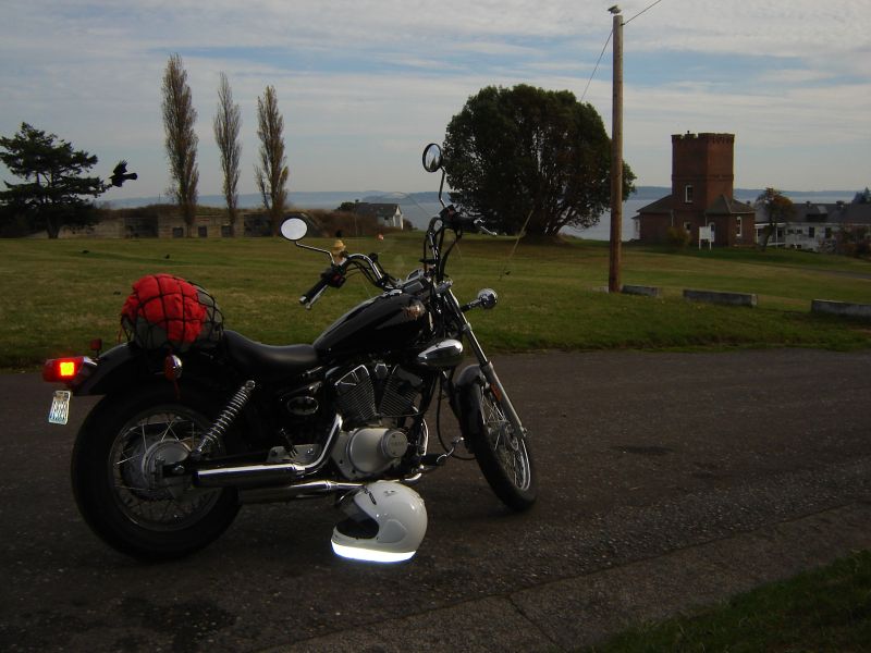 Last Sunday I went on a loooong ride by myself on the SV. It was the first time I took her out on the freeway and I was amazed at how well she handles as compared to my Virago. So stable and hardly any vibration. Of course, the first plunge on the freeway on a motorbike is always scary to me as I feel the wind blasts on my helmet from both sides. I try to crouch down as much as possible, but that feeling of utter panic carries itself into my handling of the bike as well.