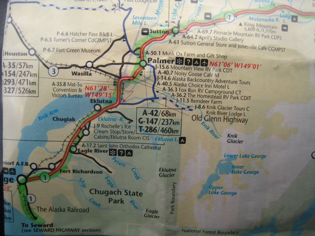 We left the town of Glenn Allen the next morning eager to put as many miles as possible between us. Anchorage was a mere two hundred miles away and the thought of finally reaching the capital city of Alaska was exciting. We got off to a spirited start, feeling spoiled by the dry roads and warm sunshine.
