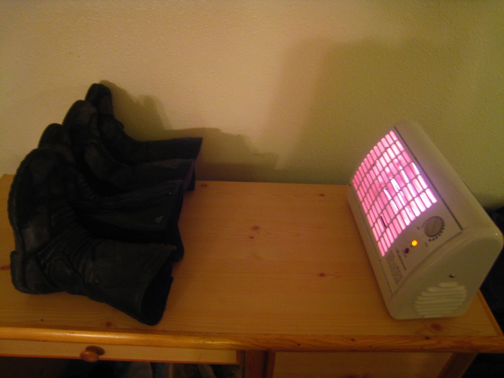 We hung out all our wet things in an effort to get them dry. Unfortunately the hotel didn’t have a dryer that we could use and we had to resort to air drying. We even borrowed a little space heater and tried to use it to dry out our waterlogged boots.