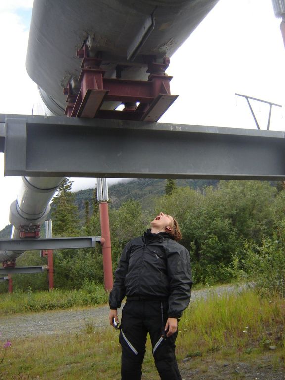 The road now seemed almost a little rural with little settlements whizzing past as we made good speed. Pretty soon we started seeing glimpses of the famed Alaskan Pipeline. By now we were both tired and in need of rest and nourishment.