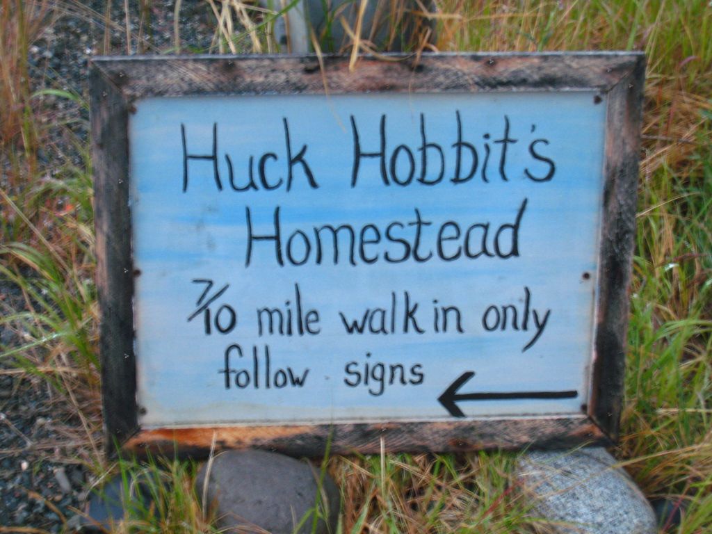It was really late in the day though and it didn’t seem possible to make it as far north as we wanted. We pulled out the list of hostels and found that there was a stop a little earlier than Tok that seemed like a likely possibility – a place called Slana at a hostel called “Huck Hobbit’s Homestead”. We had to stop at a place called Huck Hobbit’s Homestead! It seemed like the thing to do.