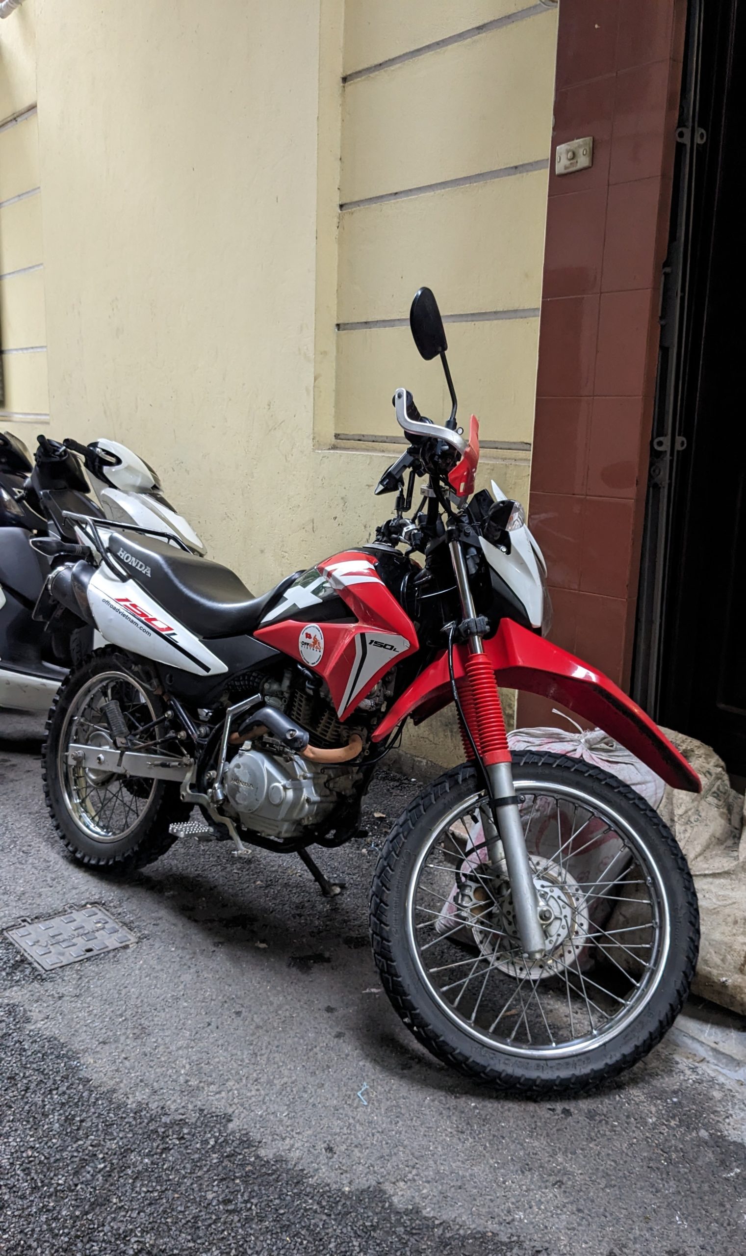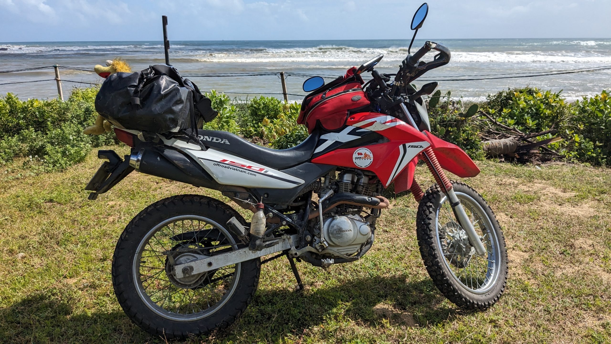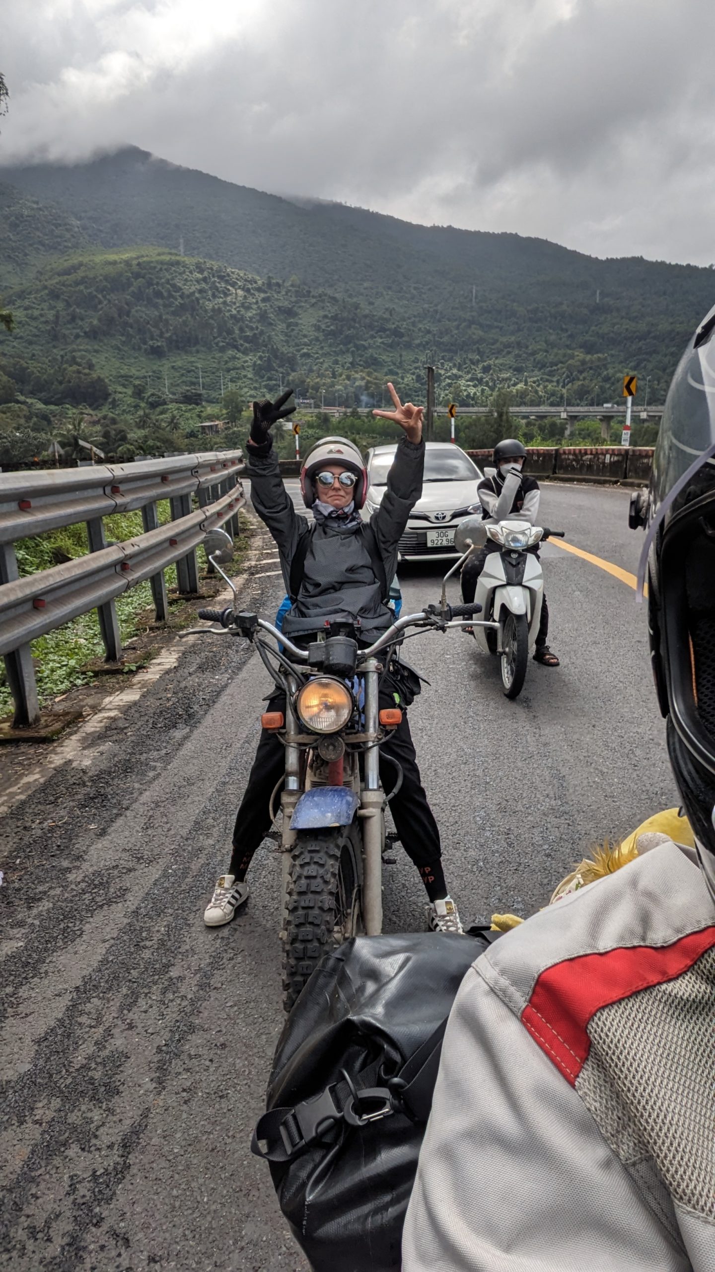 Hot and bedraggled after a long hot walk in motorcycling boots. Glad to hit the road again.