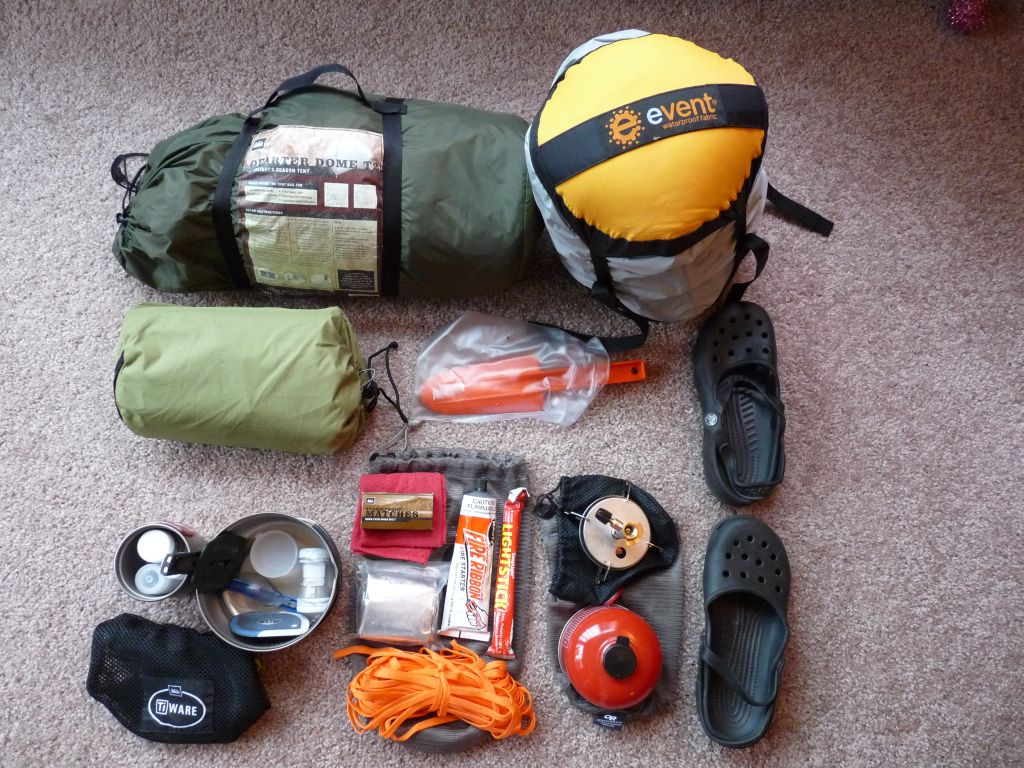 All the camping gear fits into the Ortleib bag:
