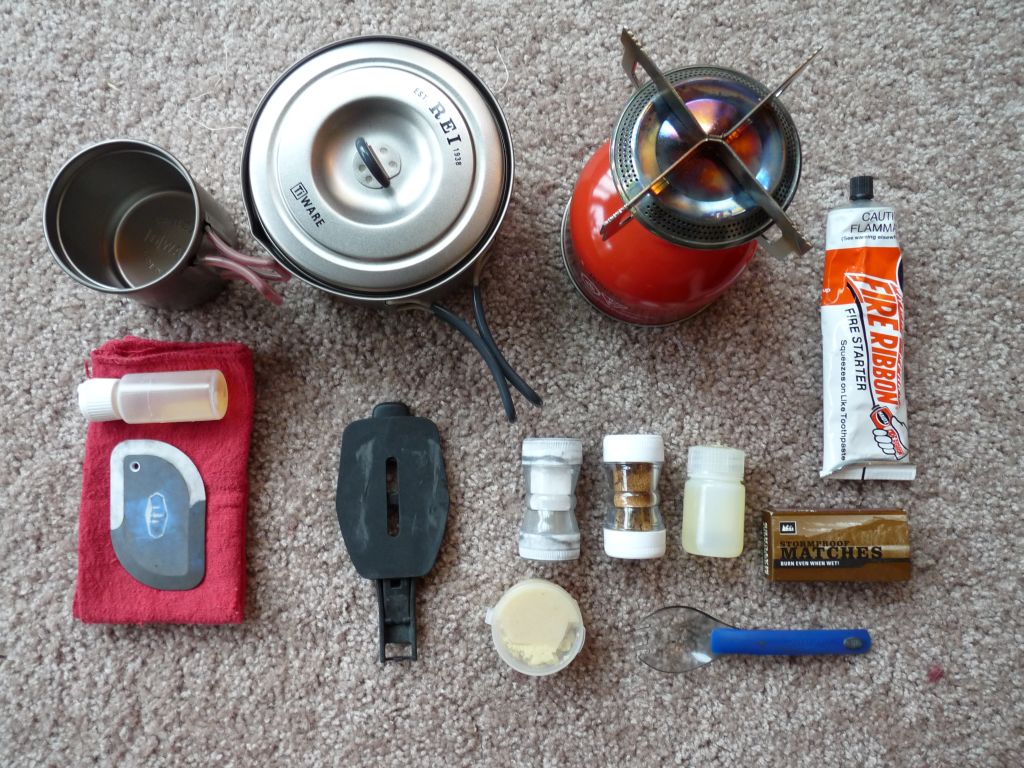 REI titanium cup – Nice for heating up water on the stove and making instant coffee, tea or hot chocolate in the mornings.